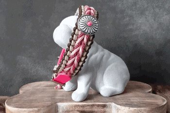 Wij maken de halsbanden/ tekenbandjes in uw gewenste kleur en op de door uw doorgegeven maat. Hierdoor proberen wij elke band met een andere uitstraling te maken zodat u altijd een unieke halsband heeft.