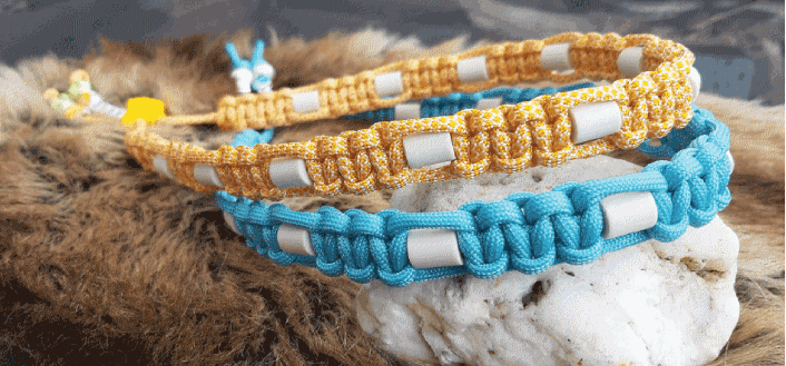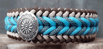 Wij werken alleen met originele paracord dat gemaakt is in de VS of de EU. Het touw is gemaakt van Nylon of Polyester en heeft een breekkracht van 247kg of 545lbs. Perfect voor halsbanden, hondenlijnen etc. U kunt uw halsband voorzien van een klik sluiting of adapter. De adapter is verstelbaar met 3 gaatjes en is in meerdere kleuren te bestellen.